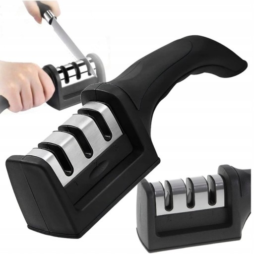 - Ręczna ostrzałka do noży to 3 gniazda, które posiadają różne funkcje ostrzące: