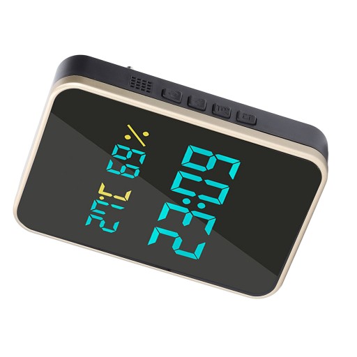 2. WYŚWIETLACZ CZASU, TEMPERATURY I WILGOTNOŚCI: Bezprzewodowy dzwonek do drzwi ma dostępne ustawienia Fahrenheita i Celsjusza, umożliwiające kontrolę i pomiar temperatury w pomieszczeniu w czasie rzeczywistym. Przełączaj wyświetlacz jednym kliknięciem.