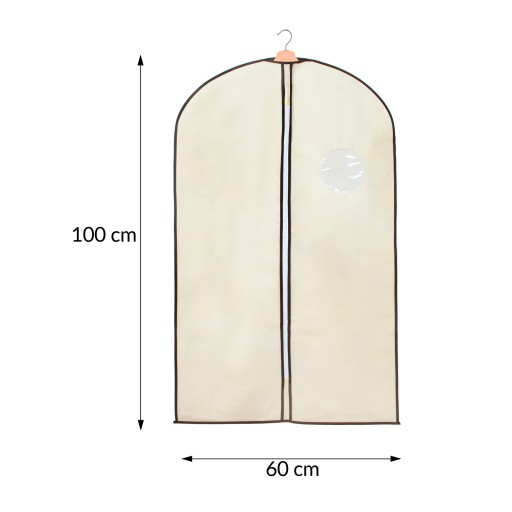 Pokrowiec posiada specjalne wycięcie umożliwiające przełożenie wieszaka. Łatwy dostęp do zawartości to zasługa suwaka przechodzącego przez środek produktu. Dodatkową zaletą produktu jest okienko, które ukazuje, jaką zawartość kryje pokrowiec.