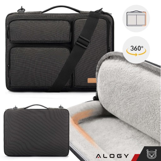 ▶️ Torba Etui pokrowiec na MacBooka Air/Pro, laptopa, tablet 15.6" Alogy z paskiem na ramię Czarna