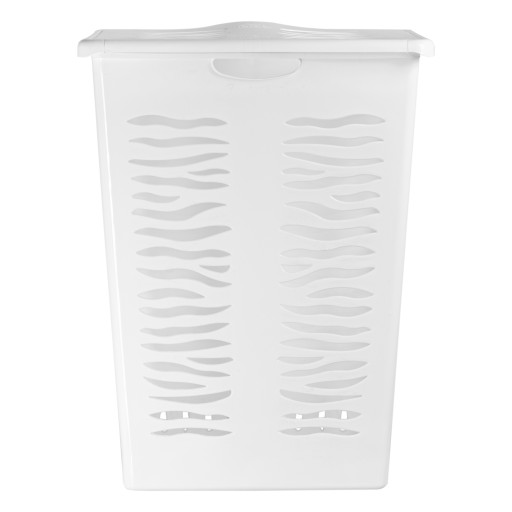 Prostokątny kosz na brudną bieliznę o pojemnosci 42 l z serii Zebra z ażurowym wycięciem w kształcie pasków zebry. Estetycznie wykonany, praktycznie ukształtowany, stanie w dowolnym miejscu mieszkania, perforacja na bocznych ściankach eliminuje „brzydki” zapach, gwarantując przepływ powietrza,„uchwyt” w pokrywie ułatwia otwieranie