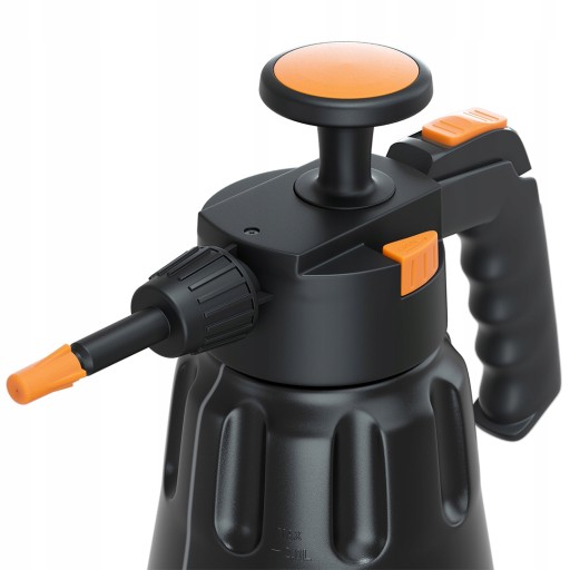 ADBL BFS ręczny opryskiwacz ciśnieniowy z regulacją strumienia. Zaprojektowany do użycia z chemią detailingową. Został wykonany z wytrzymałego tworzywa sztucznego. Wszystkie uszczelki są wykonane z VITON®. System 360st pozwala na pracę w każdej pozycji opryskiwacza. W połączeniu z blokadą spustu, umożliwia to bardzo wygodną pracę w każdych warunkach. Przycisk spustu ciśnienia pozwala na niemal bez-wysiłkowe otwieranie opryskiwacza.