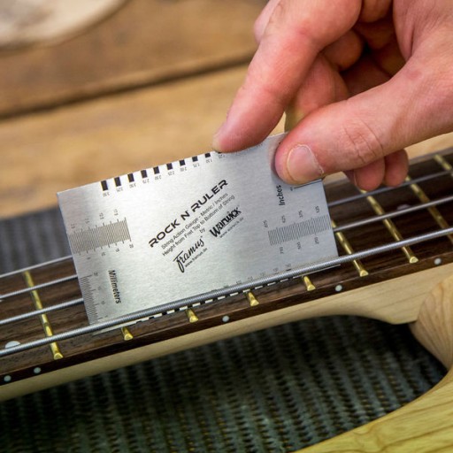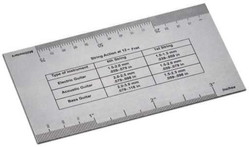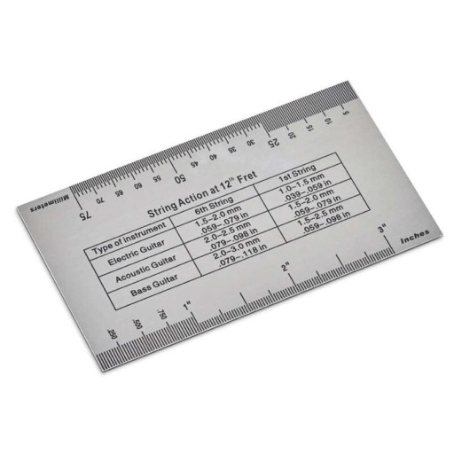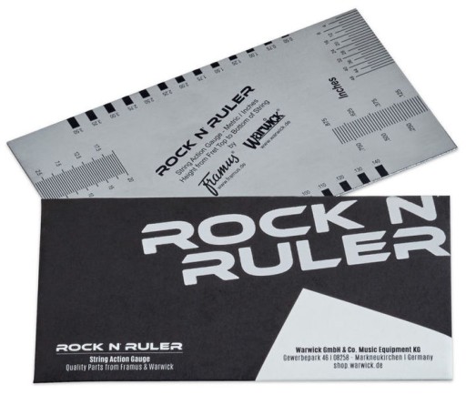 The RockCare Rock n' Ruler to wszechstronne narzędzie do ustawiania gitar i basów. Przy pomocy tej miarki z łatwością wyregulujesz akcję strun i odległość między nimi oraz nachylenie gryfu gitary. Wszystkie skale wydrukowano na miarce w dwóch wersjach: calowej i metrycznej, dzięki czemu nie ma potrzeby konwersji wymiarów. Druga strona miarki zawiera przydatne wskazówki, jak np. punkty odniesienia do ustawiania Twoich gitar elektrycznych, akustycznych i basowych. Urządzenie ma rozmiary wizytówki; bez problemu mieści się do portfela i w razie potrzeby możesz mieć je zawsze przy sobie.