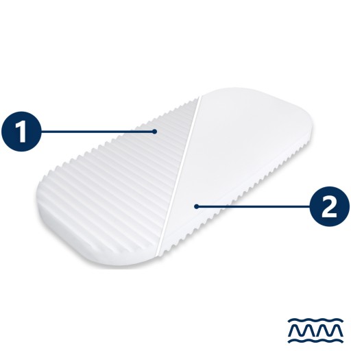 1️⃣ Profil fali wycięty na piance z jednej strony materaca zmiękcza go do twardości H2 (średniotwardy) i poprawia wentylację.