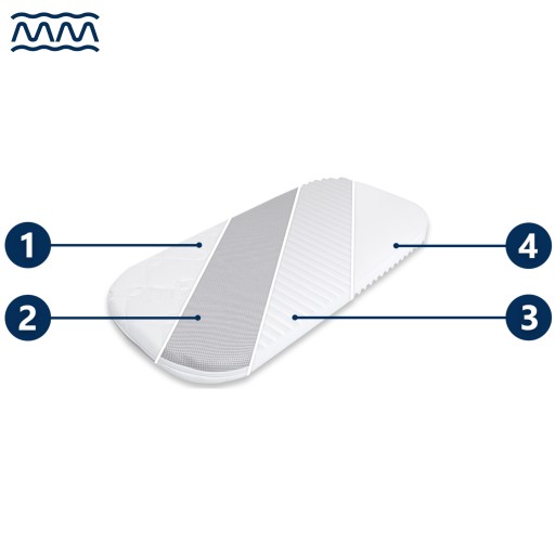 W codziennym użytkowaniu materac narażony jest na kumulację wilgoci tworzonej przez dziecko jak i przez otoczenie. Odpowiednia budowa kanalików wentylacyjnych wkładu materaca w połączeniu z unikalnymi właściwościami oddychającymi pokrowca, sprawia, że wilgoć może swobodnie odparować. Przekłada się to na lepszą higienę snu i wyjątkowy komfort cieplny Twojego dziecka