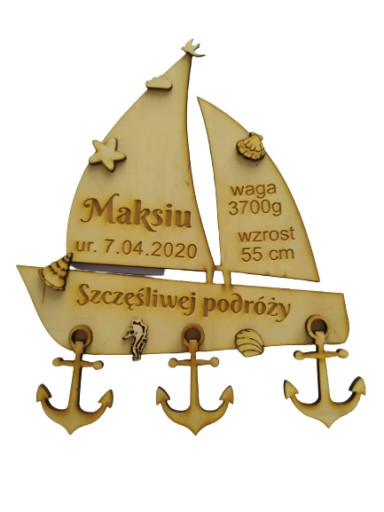 Rewelacyjny upominek w kształcie statku w całości wykonany z drewna.Wspaniała pamiątka z okazji narodzin czy na urodziny dziecka.