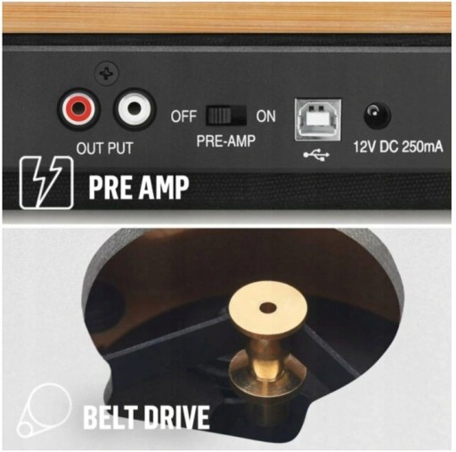 MARLEY Stir it up to wysokiej jakości gramofon z napędem paskowym z wbudowanym przedwzmacniaczem, który umożliwia precyzyjne odtwarzanie każdego nagrania z kolekcji. Gramofon oferuje dwie prędkości odtwarzania 33 1/3 oraz 45 obr./min, a także funkcję Antyskating, czyli regulacji umożliwiającej skompensowanie siły dośrodkowej spowodowanej ruchem obracającej się płyty.
