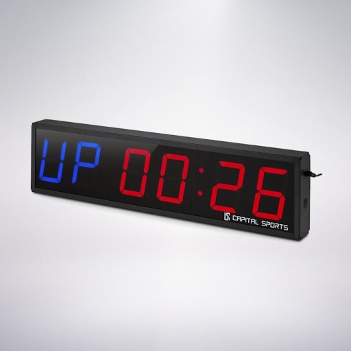 Wszystkie funkcje czasomierza sportowego firmy Capital Sports sterowane są dołączonym pilotem, tak że Timer 6 można programować, uruchamiać i stopować nawet w dużych halach sportowych i studiach fitness bez potrzeby biegania w tą i z powrotem. Zegar treningowy posiada trwałą obudowę metalową, której przedni panel wyświetla sześć dużych cyfr LED w kolorze niebieskim i czerwonym. Urządzenie można postawić na podłożu lub zamontować na ścianie, co polepsza widoczność.