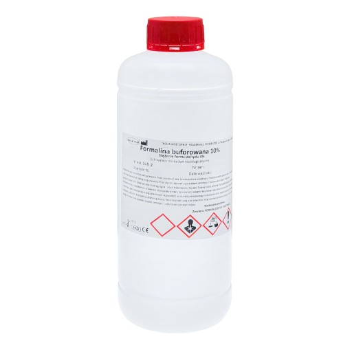 - Gotowy do użycia: Formalina 10% buforowana jest dostępna w szczelnym opakowaniu, które zapobiega parowaniu i ulatnianiu substancji.