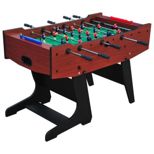 Piłkarzyki to gra mająca element rywalizacji Przynosi rozrywkę i zabawę zarówno dzieciom, jak i dorosłym Składany stół w kolorze brązowym przeznaczonym do tego celu, na pewno idealnie sprawdzi się podczas spędzania czasu z rodziną lub przyjaciółmi Stabilną i solidną konstrukcję zapewnia wykonanie z trwałej i mocnej płyty MDF, a tablica do ręcznego ustawiania wyników pomaga kontrolować ilość goli Gra jest tak skonstruowana, że pozwala na rzut piłką boiska.