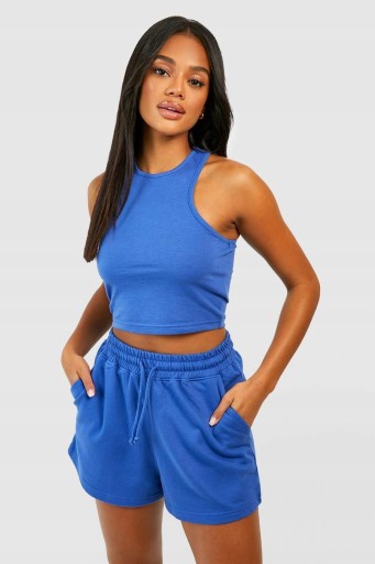 SZORTY DRESOWE BOOHOO L KOMPLET KOBALTOWY KOSZULKA BOKSERKA
