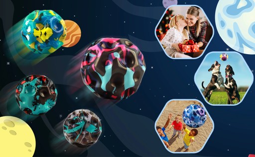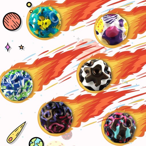 - piłka kosmiczna Super High Skacząca w różnych kolorach i wzorach. Nadaje się dla dzieci i dorosłych jako prezent urodzinowy, prezent świąteczny i dobry wybór, aby złagodzić stres, interaktywna zabawka na plażę, zajęcia na świeżym powietrzu, a także do obiektów wodnych.
