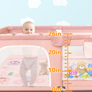 DUŻY PLAC ZABAW Z MATĄ: 180,84 cm długość x 140,36 cm szerokość x 65,34 cm głębokość, bardzo duży kojec dla dzieci jest dostępny dla dorosłych, jak i dzieci. Jest tam mnóstwo miejsc dla dzieci do zabawy, raczkowania, turlania się, nauki chodzenia i nie tylko. Wysokość kojca dla maluchów wynosi 25,5 cala (ok. 64,8 cm), co uniemożliwia samodzielne wyjście na zewnątrz. Możesz także wszystkie elementy w kojcu, aby wyłączyć urządzenie w domu, zapobiegać lizaniu zabawek przez zwierzęta i bezpośrednie wyłączne miejsce do zabawy.
