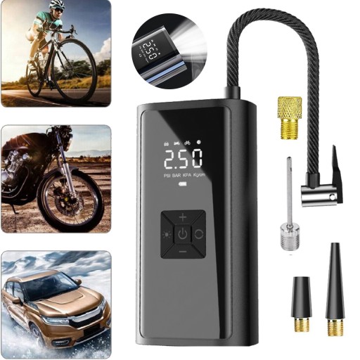 🚗 【Wiele zastosowań】 - Ta bezprzewodowa pompa powietrza jest wyposażona w kilka różnych dysz pomocniczych. Nadaje się do samochodów, motocykli, rowerów, skuterów elektrycznych, wózków inwalidzkich, piłek do koszykówki, piłki nożnej itp. Produkt łączy w sobie funkcjonalność i estetykę.⭐
