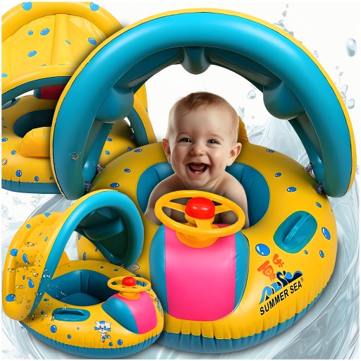 KOŁO DO PŁYWANIA DLA NIEMOWLĄT DZIECI Z DASZKIEM KIEROWNICĄ DMUCHANE MOCNE