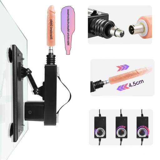 Ruchoma sex maszyna, która sprawi, że masturbacja stanie się Twoją ulubioną metodą do uzyskiwania najwyższej seksualnej satysfakcji. Masturbator w formie ruchomego penisa spełni najskrytsze fantazje erotyczne każdej Pani. Maszyna dostępna z sześcioma końcówkami, każda z nich daje niesamowite przeżycia, dodatkowo istnieje możliwość przedłużenia poprzez sztywną lub giętką przedłużkę. Dodatkowo z komplecie seks masażer do pieszczot piersi, łechtaczki i anusa. Sposób działania maszyny to żwawy sposób poruszania penisami przód - tył, członek wykonuje energiczny ruch posuwisty. Silnik zasilany jest prądem 220v (z gniazdka) dzięki temu posiada bardzo intensywne i mocne pchnięcia. Masturbator posiada ustawienia różnych kąt nachylenia, a stabilne mocowania do podłoża zapewniają silne przyssawki.