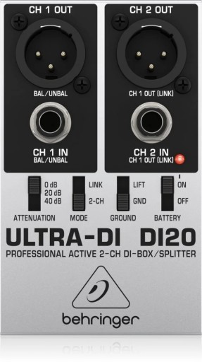BEHRINGER ULTRA-DI DI20 - profesjonalny 2-kanałowy DI-Box aktywny z funkcją splittera.