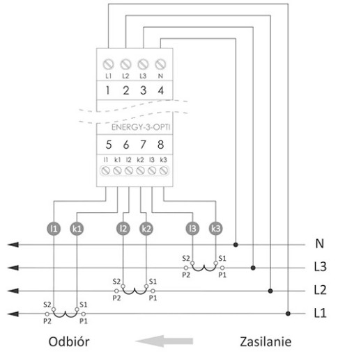 - 1 szt. Monitor energii elektrycznej WI-MEF-3-OPTI-100