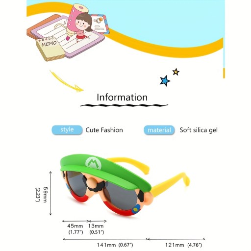 To nie tylko okulary przeciwsłoneczne, to zaproszenie do zabawy i wyobraźni! Wygodne w noszeniu, te stylowe okulary przeciwsłoneczne są idealne dla dzieci! Niezależnie od tego, czy chodzi o okulary na zbliżającą się imprezę przebierańców, czy codzienną zabawę, ten Super Mario jest stworzony do zabawy w słońcu.