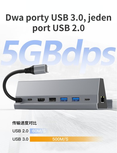 Interfejsy: USB-C X 2, USB-A X 3, HDMI, port LAN