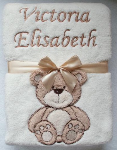 Botobaby - Одеяло с именем и свидетельством о рождении - С МЕДВЕДЕМ - ВЫШИВКА ПОДАРОК НА ДЕНЬ РОЖДЕНИЯ