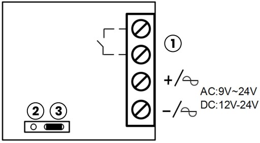 - Napięcie: AC:9V~24V (częstotliwość AC:50/60Hz, Imax = 35mA) DC: 12V~24V (Imax = 35mA)