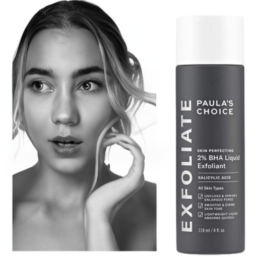 Paula's Choice - Skin Perfecting - 2% BHA Liquid Exfoliant - peeling kwasowy zawierający kwas salicylowy w najwyższym dopuszczalnym stężeniu - 2%. Kwas salicylowy to beta-hydroksykwas, który rozpuszcza się w tłuszczach. Jest to niezwykle ważne, ponieważ dzięki takiej właściwości może przenikać przez warstwę lipidową skóry i  oczyszczać zaczopowane ujścia gruczołów łojowych ("pory"), zmniejszając ich widoczność. Dodatkowo w składzie znajdziemy ekstrakt z liści zielonej herbaty, który działa ściągająco, przeciwzapalnie i tonizująco na skórę. Kosmetyk posiada pH wahające się między 3,2 a 3,8.