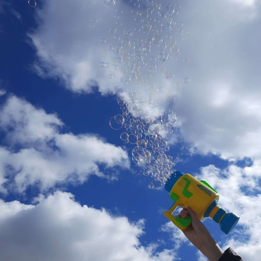 Koniec z męczącym dmuchaniem ustami w małą dziurkę, z której i tak często ciężko było stworzyć duże ilości baniek na raz. Pistolet za sprawą jednego kliknięcia umożliwi stworzenie wielu baniek - i to bez jakiegokolwiek wysiłku! W zestawie znajduje się również płyn do baniek, saszetka z dodatkowym płynem do rozcieńczenia z wodą oraz mieszka ułatwiająca maczanie pistoletu w płynie. Ale jak to właściwie działa? Już wyjaśniamy!