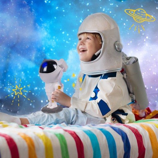 Projektor gwiazd w kształcie astronauty jest idealnym rozwiązaniem dla dzieci, które nie lubią spać w ciemnościach. Dzięki funkcji przytulnej lampki nocnej, urządzenie tworzy spokojną i relaksującą atmosferę, pomagając najmłodszym zasypiać w otoczeniu magicznych gwiazd i galaktyk.
