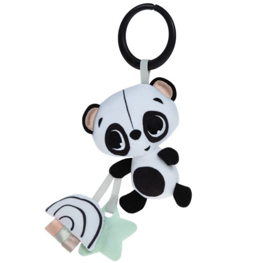 PRZYTULNY I UROCZY: Pierścień, za pomocą którego można przymocować zabawkę do fotelika czy wózka, pozwala na zabranie jej w podróż, dzięki temu Panda może być z maluchem wszędzie, zapewniając mu poczucie bezpieczeństwa.