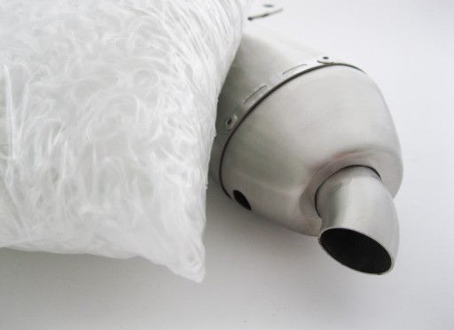 Worek w prosty sposób aplikuje się do komory tłumika. Po odpaleniu silnika gorące spaliny roztapiają worek PE natomiast luźne włókno wypełnia wnętrze tłumika.