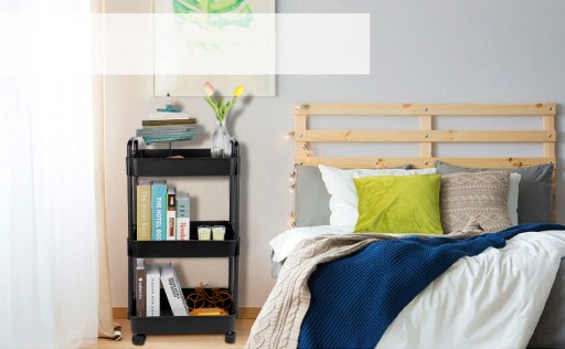 - Wózek na kółkach może być używany do organizowania książek, przekąsek, zabawek w salonie, do przechowywania kosmetyków, ręczników, środków czystości w łazience lub do umieszczania przypraw, płatków śniadaniowych i przyborów kuchennych w kuchni.