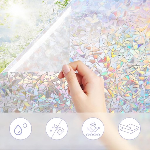 ✅ EFEKT TĘCZY 3D - Wykorzystując proces trawienia 3D i zasadę lustra Mitsubishi, tworzy niepowtarzalny efekt tęczy, gdy światło słoneczne przechodzi przez powierzchnię okna z tęczowej folii spożywczej, dzięki czemu Twoje szkło wygląda jak piękne dzieło sztuki, alternatywa dla drogiego szkła teksturowanego ( Uwaga: sam produkt nie ma żadnego koloru)