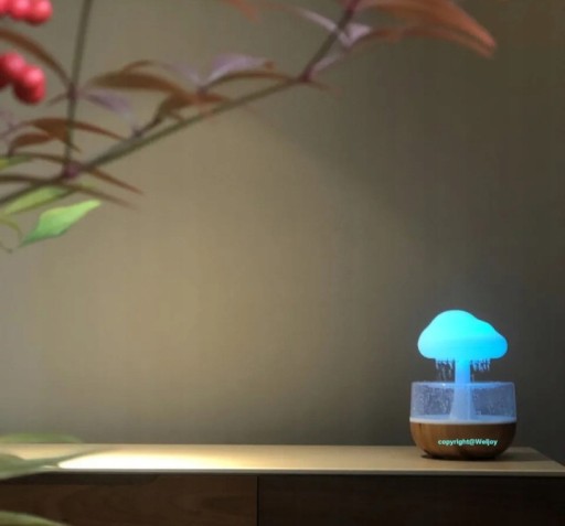 Nowoczesny nawilżacz powietrza przypominający chmurę deszczową wnosi świeży powiew do wnętrza domu, biura. Służy nie tylko jako urządzenie nawilżające, ale także jako piękna ozdoba domu, która doda uroku każdemu pomieszczeniu.