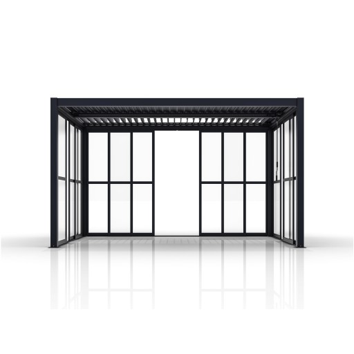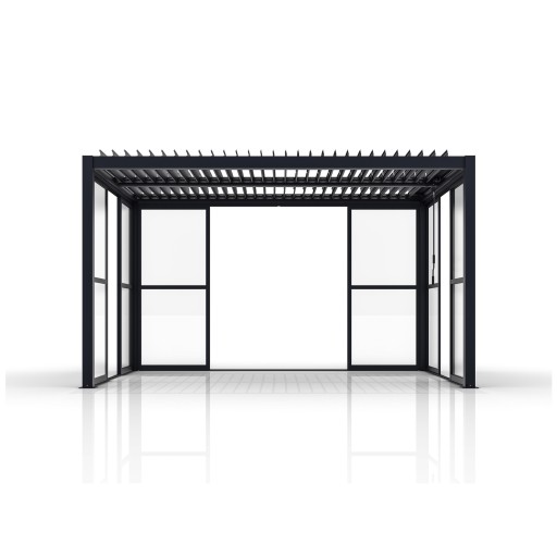 Ścianka przesuwna umożliwia łatwe dostosowanie przestrzeni pergoli do aktualnych potrzeb, dzięki czemu można ją szybko zamknąć lub otworzyć w zależności od warunków pogodowych. System przesuwny działa płynnie i cicho, co zwiększa komfort użytkowania. Przezroczyste panele poliwęglanowe zapewniają ochronę przed czynnikami atmosferycznymi, jednocześnie nie blokując dostępu światła do wnętrza pergoli.