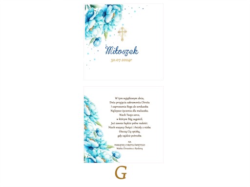 - NUMER ŻYZCEŃ ORAZ INFORMACJĘ KTO SKŁADA ŻYCZENIA Np. Życzy OJCIEC CHRZESTNY Z RODZINĄ