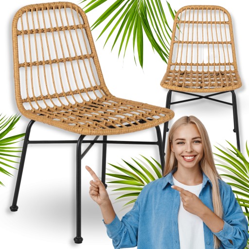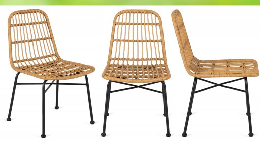 - Krzesło rattanowe WALDI w kolorze naturalnego drewna z czarnymi nogami