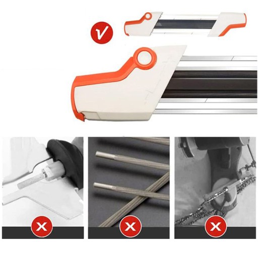- Łatwy w użyciu, zaprojektowany z uchwytami po obu stronach, wystarczy pocierać go ręcznie w przód i w tył, aby łańcuch znów był ostry, bez przypadkowego zranienia palców.