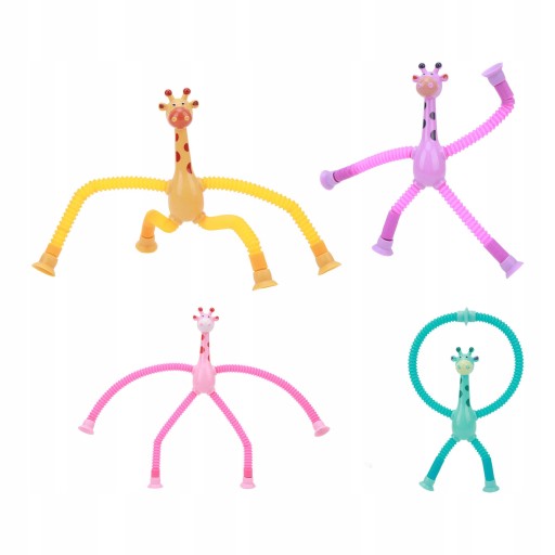 . 4X TELESKOPOWA PRZYSSAWKA ŻYRAFA FIGURKA SPRĘŻYNKA ROZCIĄGAJĄCE ZABAWKI