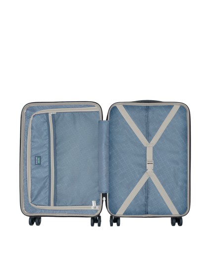 - Pasy spinające, kieszeń zamykana na suwak oraz przegroda między komorami pozwalają na utrzymanie porządku w walizce oraz zabezpieczenie garderoby przed pognieceniem.
