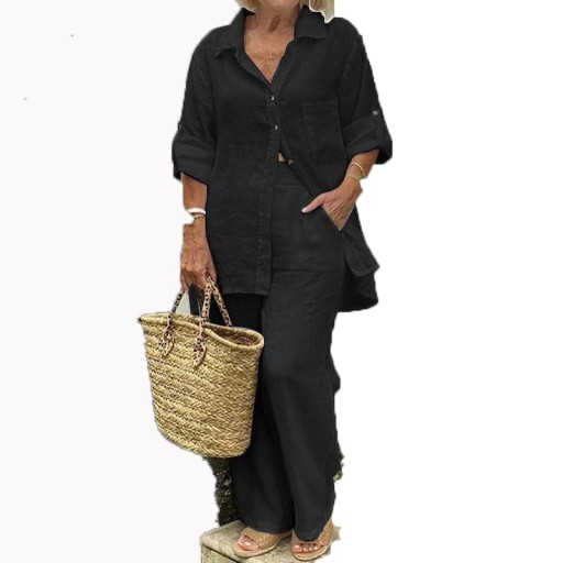 1x Damski garnitur bawełniany lniany(1*Koszula 1*Spodnie)