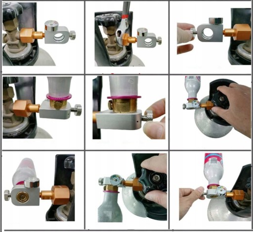 Każda przetoczka w zestawie zawiera zapasowe uszczelki. Do napełniania nabojów 425g wymagana jest butla z syfonem. W przypadku posiadania butli bez syfonu przed otwarciem zaworu należy ją odwrócić do góry nogami aby płynny dwutlenek węgla wtłoczył się do naboju.