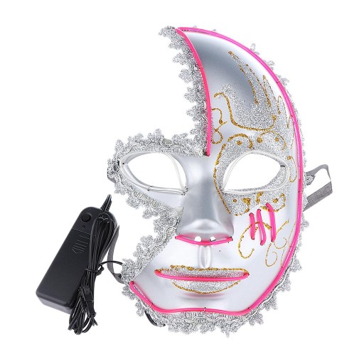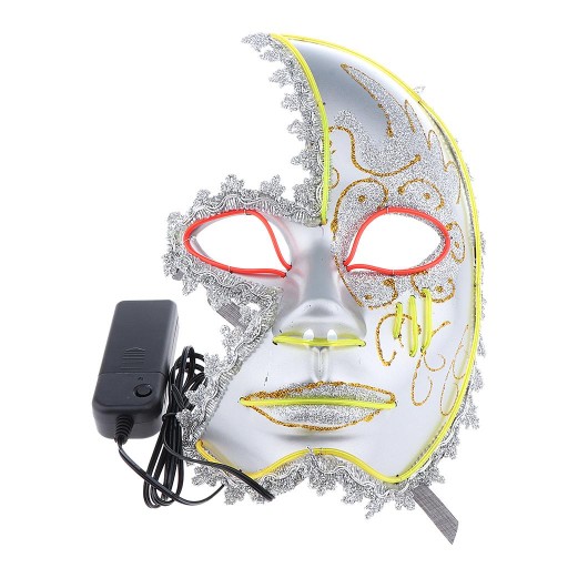 Świecąca dioda LED na Halloween Półmaska na twarz Rekwizyt Cosplay Fluorescencyjny zielony i czerwony