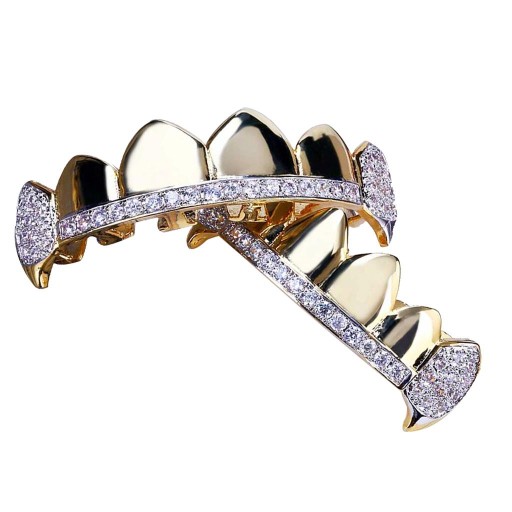 Platerowane grille Zestawy górnego i dolnego grilla, grawerowana błyszcząca cyrkonia