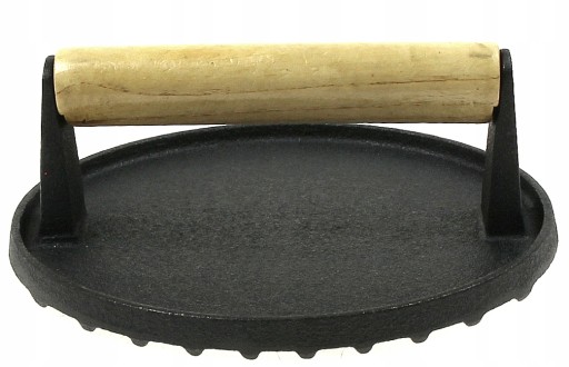 Żeliwna prasa do mięsa np. do hamburgerów, steków, bekonu a nawet pieczywa. Wykonana jest z żeliwa, o wysokiej wytrzymałości, przeznaczona na wiele lat użytkowania.