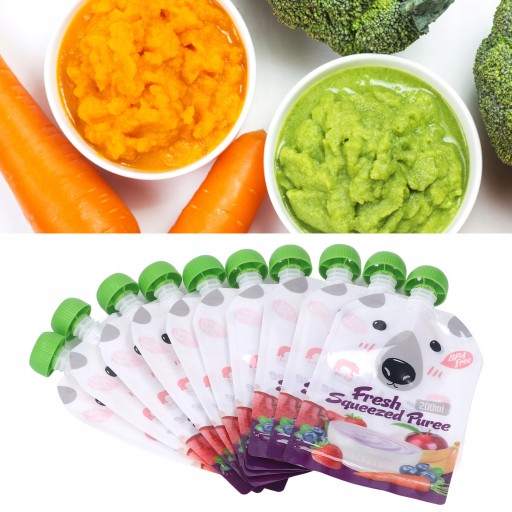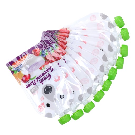 10 szt. Torebka na żywność wielokrotnego użytku 200 ml Przenośna torba do przechowywania żywności dla niemowląt z możliwością wielokrotnego napełniania, przecier owocowy