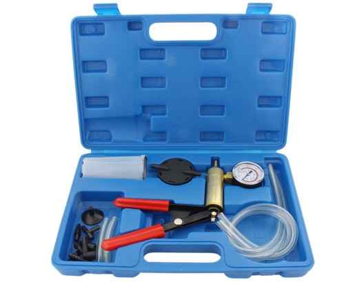 Opis narzędzia: Ręczna pompa podciśnieniowa do wymiany płynu i wytwarzania podciśnienia. Uniwersalna, z wieloma akcesoriami w poręcznej walizce