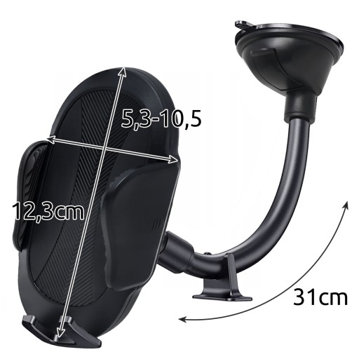 - SPECYFIKACJA - kolor: czarny, materiał: abs, żel krzemionkowy, PC; obrót uchwytu 360 st; wymiar uchwytu: 12,3 cm x 5,3 -10,5 cm; długość uchwytu: 31 cm; waga: 163 g; waga w opakowaniu: 213 g.