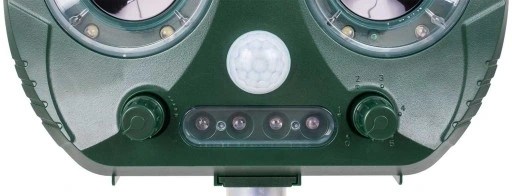 ✔️ Odstraszacz zwierząt został wyposażony w możliwość regulacji wydawanych dźwięków oraz mocne, błyskowe lampy LED!