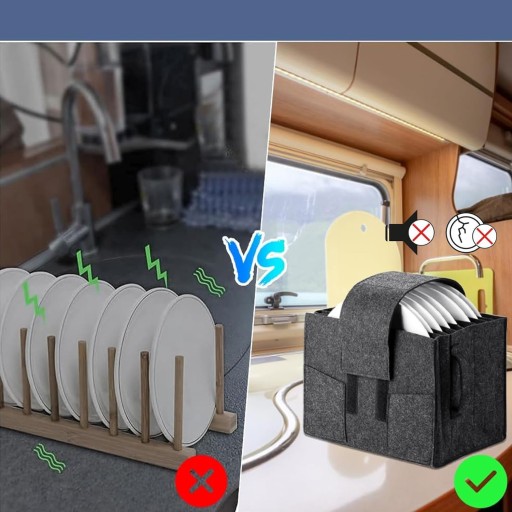 ▶ Organizer na talerze obiadowe: elastyczna płyta z funkcją zapobiegającą zarysowaniom, wysokiej jakości wykonanie, a dodatkowo mata do przechowywania talerzy obiadowych jest również wyposażona w zamek, aby zapewnić maksymalne bezpieczeństwo.